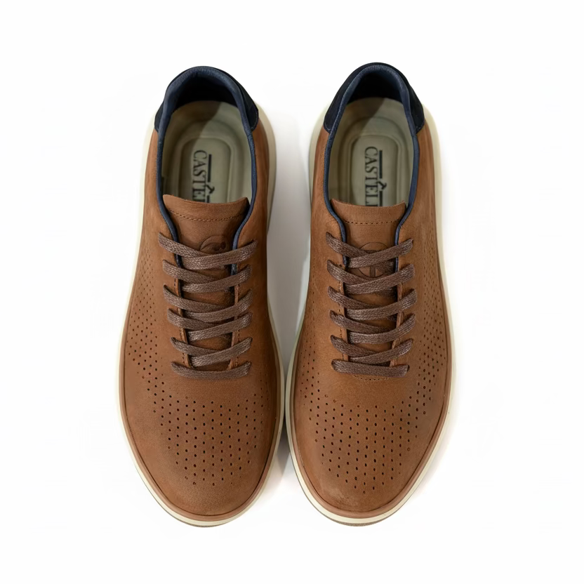 Su cuero genuino aporta carácter y durabilidad, mientras que la estructura liviana y la plantilla acolchada garantizan comodidad a lo largo del día. Es un diseño versátil que eleva looks casuales y smart-casual sin esfuerzo, manteniendo la elegancia característica de Castello.