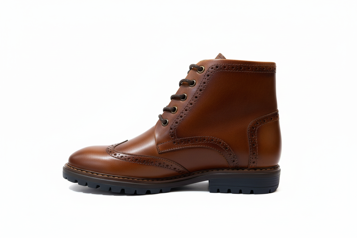 La Bota Oxford Café es una reinterpretación refinada del clásico zapato Oxford, llevada a un formato de bota que aporta carácter, presencia y versatilidad. Su acabado en cuero café incorpora sombreados artesanales, que crean profundidad visual y resaltan cada línea del diseño, logrando un aspecto sofisticado y atemporal.